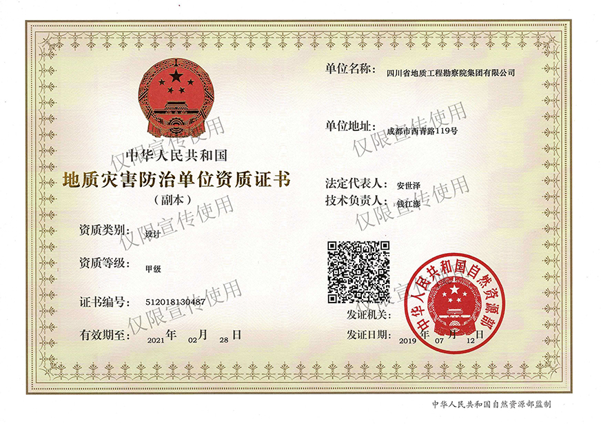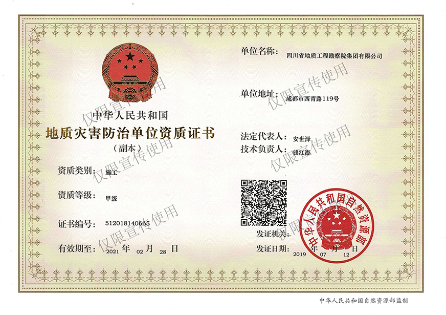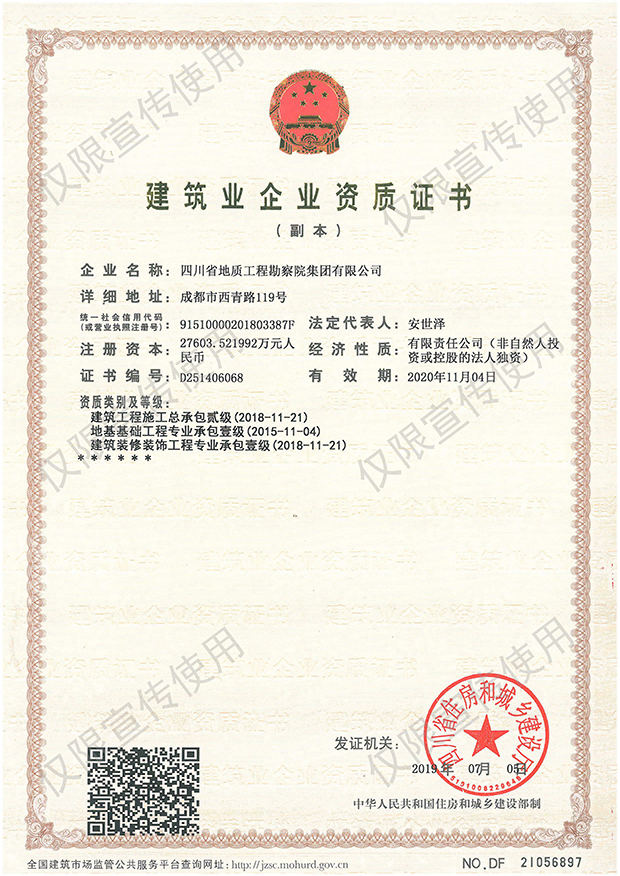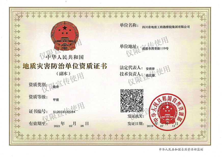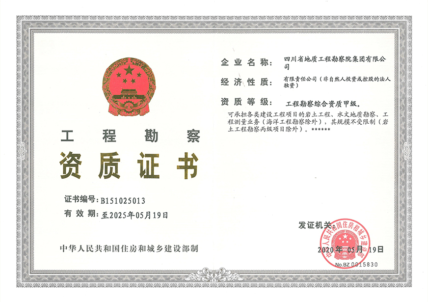 川勘集團擁有工程勘察綜合類,地質勘查,測繪,地質災害評估和治理工程勘查設計、施工、監(jiān)理,城鄉(xiāng)規(guī)劃編制,水利行業(yè)設計,環(huán)境工程專業(yè)設計,水利水電工程、建筑工程、市政公用工程、公路工程施工總承包,地基基礎工程、建筑裝修裝飾工程、環(huán)保工程專業(yè)承包,檢驗檢測機構(CMA),水資源論證,水文與水資源調查評價,土地規(guī)劃機構,四川省環(huán)境污染防治工程等級評價、地震安全評價等甲(壹)、乙(貳)級資質、行業(yè)認證30余項。