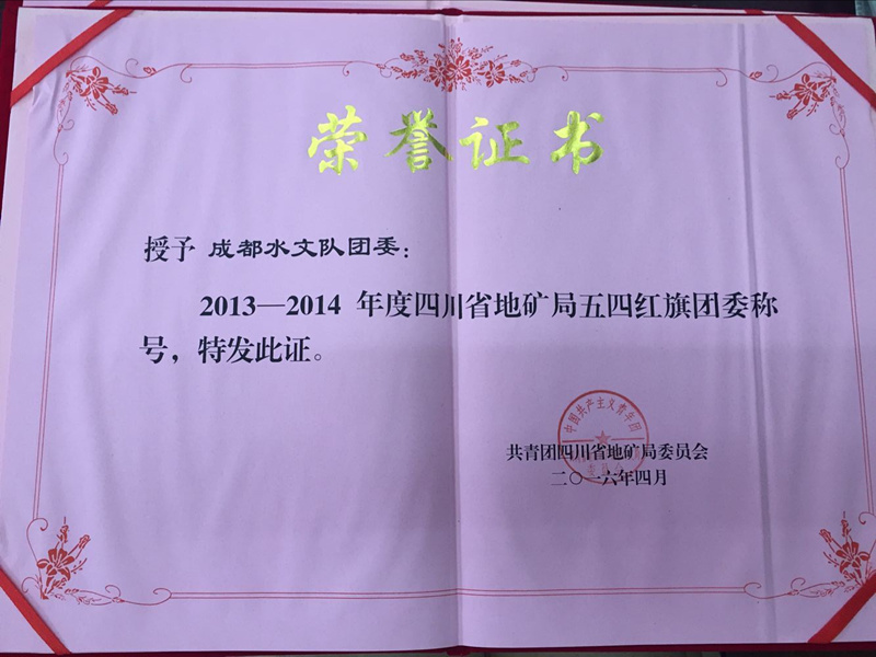 5月3日,局團(tuán)委2016年度工作會(huì)議在溫江召開,會(huì)上表彰了2013年-2014年度各類先進(jìn)集體和先進(jìn)個(gè)人。我隊(duì)團(tuán)委榮獲五四紅旗團(tuán)委稱號(hào),巖土工程公司榮獲青年文明號(hào)稱號(hào),隊(duì)團(tuán)委書記李彥婷榮獲優(yōu)秀團(tuán)干部稱號(hào),地質(zhì)工程公司袁磊榮獲青年崗位能手稱號(hào),環(huán)境工程中心石鑫榮獲優(yōu)秀共青團(tuán)員稱號(hào)。