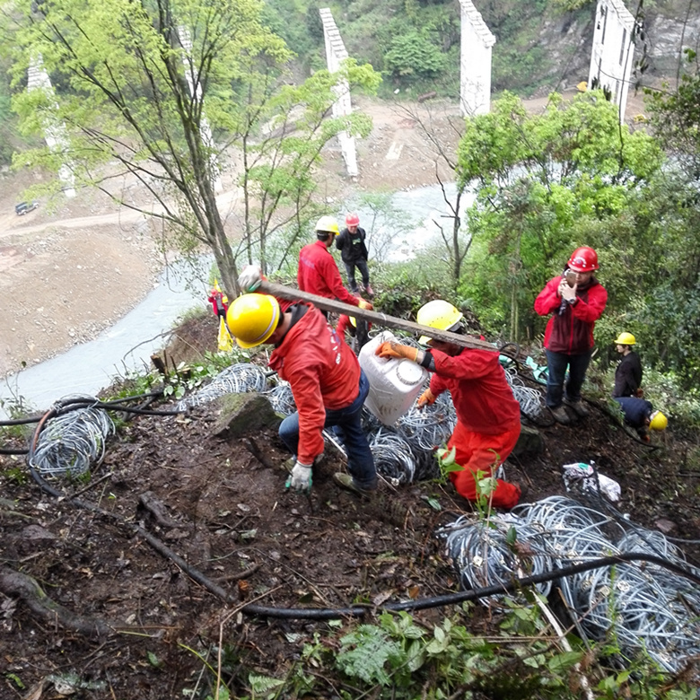 4月23日緊急進(jìn)場(chǎng),5月2日提前完成搶險(xiǎn)工程任務(wù),完成了9000 m2的主動(dòng)防護(hù)網(wǎng)安裝、6000 m2的坡面清危、6000m2的坡面混凝土噴射工作。如果不是一支素質(zhì)過硬,作風(fēng)優(yōu)良,敢打硬仗的專業(yè)隊(duì)伍,在這樣的重大任務(wù)面前,短短10天完成搶險(xiǎn),無論如何也難以完成。正是因?yàn)榻?jīng)歷了丹巴建設(shè)街滑坡應(yīng)急搶險(xiǎn)工程、文家溝特大山洪泥石流應(yīng)急搶險(xiǎn)工程、“4.20”地震寶興縣冷木溝、教場(chǎng)溝泥石流應(yīng)急搶險(xiǎn)工程的歷練,面對(duì)此次滑坡?lián)岆U(xiǎn),作為四川省地質(zhì)災(zāi)害防治工程的主力軍,地質(zhì)災(zāi)害勘查設(shè)計(jì)實(shí)力過硬、應(yīng)急搶險(xiǎn)經(jīng)驗(yàn)豐富充分發(fā)揮了作用。項(xiàng)目組精心籌劃、合理安排、科學(xué)分工,全體人員團(tuán)結(jié)一致、緊密合作,有條不紊,充滿信心,盡顯“國(guó)土衛(wèi)士、地礦鐵軍”的英雄本色。