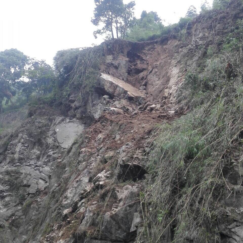 5月10日14點(diǎn),國(guó)道318線天全縣境內(nèi)月亮灣大橋往二郎山方向約60m處公路內(nèi)側(cè)邊坡發(fā)生小規(guī)模崩塌,緊急搶修后交通恢復(fù),但坡體上部仍殘留下較多的崩塌物,有隨時(shí)下滑掩埋路面再次阻斷交通的可能,途經(jīng)車輛極其危險(xiǎn),安全隱患極大。