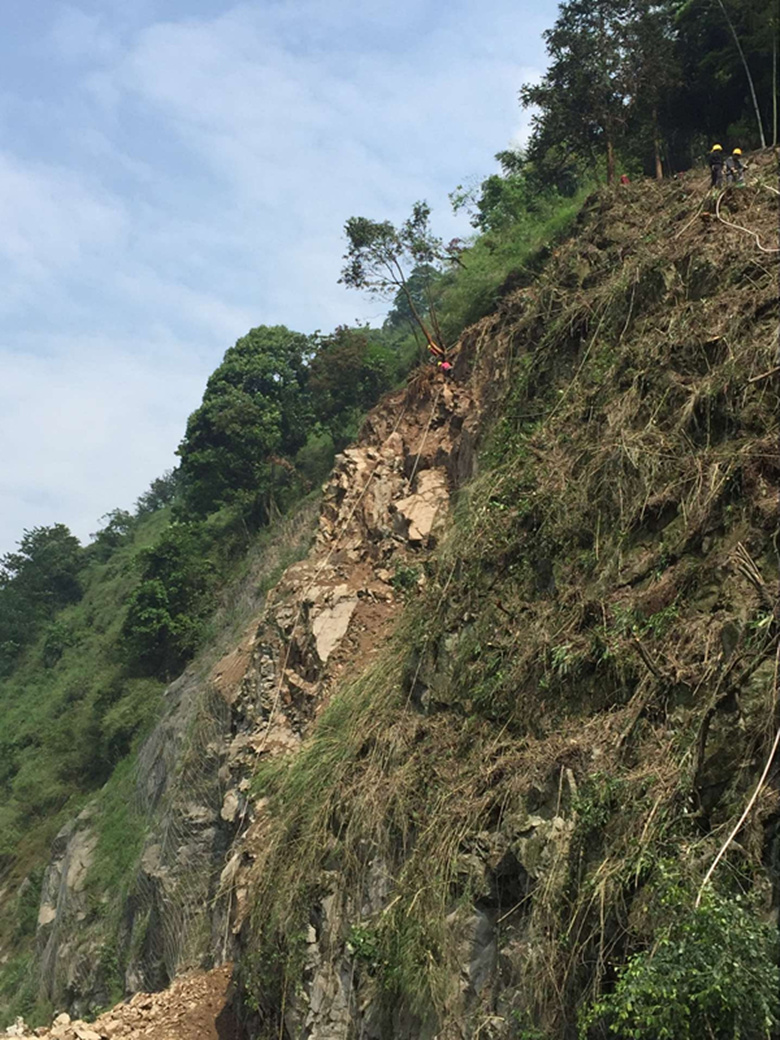 經(jīng)項(xiàng)目組清理路面跨塌土石方后,318國(guó)道已于19日晚恢復(fù)通車。目前,項(xiàng)目組正在清除坡體上殘留崩塌體、安裝主動(dòng)防護(hù)網(wǎng)。