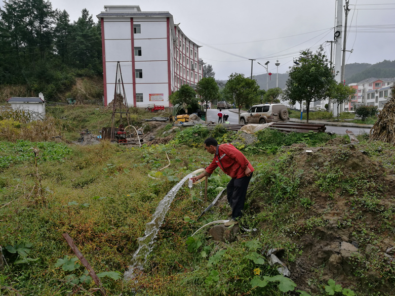 專業(yè)引領(lǐng),探采結(jié)合,成井出水。項目組充分發(fā)揮我院水文地質(zhì)、水文物探、鉆探多專業(yè)優(yōu)勢,技術(shù)人員協(xié)同攻關(guān),首先通過地質(zhì)分析尋找富水地段和儲水構(gòu)造。然后布置物探進行勘查。最后針對工作區(qū)地層巖性和地質(zhì)構(gòu)造特點,進行成井設計,并按設計進行施工。項目組設計的4口探采結(jié)合井已全部完成,成井率100%。尤其是布設在貴州省赫章縣安樂溪鄉(xiāng)鄉(xiāng)政府的探采結(jié)合井(編號:ZK29),該井井深160.2米,水位位于井口,微承壓,出水量500立方米/天左右時的穩(wěn)定降深不到30米,該井可補充安樂溪鄉(xiāng)集中供水,惠及人口近萬人,有效的緩解了安樂溪鄉(xiāng)群眾飲水困難的問題,受到了安樂溪鄉(xiāng)政府和赫章縣國土資源局的高度贊揚。