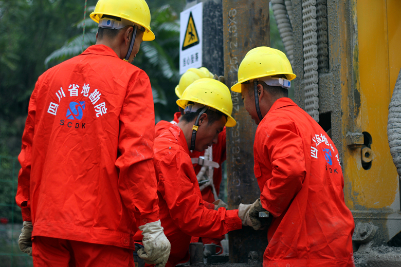 為了高質(zhì)量、高水平、按期圓滿完成所擔(dān)負(fù)的科研任務(wù),我院組建了技術(shù)實(shí)力強(qiáng)勁的科研、施工隊(duì)伍,并力求在多項(xiàng)技術(shù)研究、施工工藝、儀器配備上提升科技含量,取得進(jìn)一步的創(chuàng)新突破。在技術(shù)研究方面,從院屬水文地質(zhì)工程公司抽調(diào)一批長(zhǎng)期從事水文地質(zhì)工作、已經(jīng)積累了豐富經(jīng)驗(yàn)的中青年技術(shù)骨干擔(dān)綱,老專家進(jìn)行指導(dǎo)。他們著眼于國(guó)際國(guó)內(nèi)同行業(yè)最新研究成果,充分運(yùn)用最近幾年在四川石化煉廠開展地下水監(jiān)測(cè)所取得的實(shí)踐經(jīng)驗(yàn),在對(duì)整個(gè)示范區(qū)6534平方公里內(nèi)頁(yè)巖氣井場(chǎng)的水文地質(zhì)條件進(jìn)行詳細(xì)調(diào)查的基礎(chǔ)上,結(jié)合采氣井與回注井建設(shè)運(yùn)行特征,針對(duì)巖溶地下水敏感地區(qū)、紅層砂泥巖缺水地區(qū)等不同的地下水類型區(qū)、地下水環(huán)境保護(hù)目標(biāo)等因素,反復(fù)分析研究,篩選出3個(gè)典型井場(chǎng)作為地下水監(jiān)測(cè)示范平臺(tái),順利完成了第一階段的環(huán)境水文地質(zhì)勘查及監(jiān)測(cè)井布置、成井參數(shù)設(shè)計(jì)方案。在監(jiān)測(cè)井施工方面,他們著眼于環(huán)境保護(hù),著眼于推廣應(yīng)用由省級(jí)地勘單位發(fā)展能力提升專項(xiàng)資金購(gòu)買的XFS-600履帶式多功能水井鉆機(jī)(全液壓潛孔錘鉆進(jìn)鉆機(jī)),配套高壓清洗機(jī)及世界領(lǐng)先技術(shù)的美國(guó)壽力空氣壓縮機(jī),按照安全文明工地標(biāo)準(zhǔn)組織施工,同時(shí)與傳統(tǒng)回旋鉆機(jī)、CZ系列沖擊鉆機(jī)進(jìn)行大氣揚(yáng)塵污染程度、場(chǎng)地泥漿污染程度、施工進(jìn)度、施工成本等對(duì)比研究,為今后更加廣泛使用先進(jìn)設(shè)備、環(huán)保工藝,以及節(jié)能減排、降耗增效提供基礎(chǔ)資料。在監(jiān)測(cè)儀器配備方面,他們著眼于引進(jìn)國(guó)際上性能穩(wěn)定、參數(shù)較多、性價(jià)比最優(yōu)的在線監(jiān)測(cè)儀器,研究使用太陽(yáng)能裝置作為監(jiān)測(cè)儀器動(dòng)力,使用互聯(lián)網(wǎng)作為單位及管理研究人員專門接收終端,在整個(gè)體系中完全實(shí)現(xiàn)地下水水質(zhì)的實(shí)時(shí)跟蹤監(jiān)測(cè)。