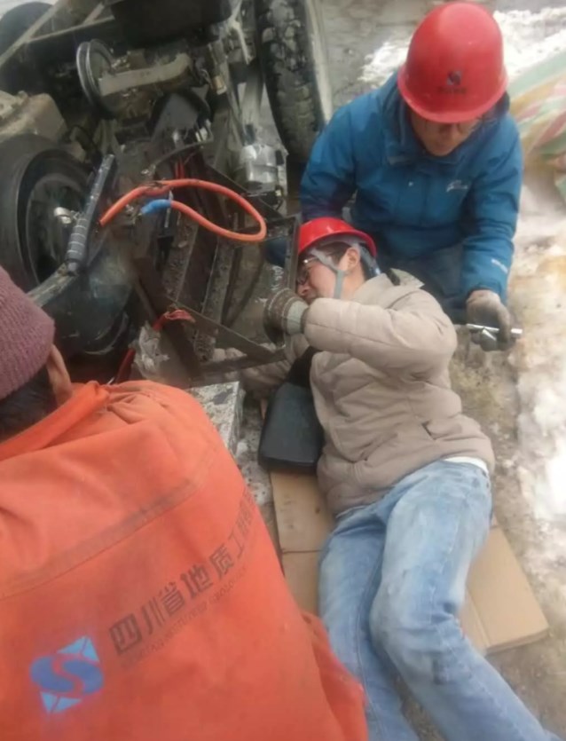 項(xiàng)目經(jīng)理馬天華立即召開緊急會議,討論解決方案。由于項(xiàng)目工地距離縣城較遠(yuǎn),近距離的鄉(xiāng)鎮(zhèn)又沒有維修條件,無論是重新購置設(shè)備,還是前往縣城維修設(shè)備或者請維修師傅前來,都至少要耽誤一周的工期。為確保項(xiàng)目順利開工,項(xiàng)目部成員馬天華、唐爽、李博等人討論決定,對已壞的三輪車進(jìn)行拆解,取下能用的柴油機(jī)及零件組裝到同一臺三輪車上。他們通過網(wǎng)上查閱資料,電話咨詢等,克服了工地現(xiàn)場零件缺失、材料不足的困難,在冰天雪地中完成了組裝任務(wù),最終使其中一輛三輪車實(shí)現(xiàn)運(yùn)轉(zhuǎn),可以勝任硐內(nèi)的棄渣轉(zhuǎn)運(yùn)工作。