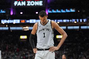 根據(jù)球隊傷病報告顯示,文班亞馬(右腳踝酸痛)出戰(zhàn)成疑。受傷病影響,文班缺席了昨天對陣掘金的比賽。