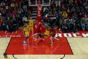 GIF-阿門搶籃板 給了詹姆斯一巴掌 裁判沒有表示