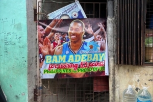 霍華德社媒曬出的照片中,菲律賓球迷慶祝阿德巴約拿到83分,但是用的是霍華德的照片。霍華德還曬出了一張兩人照片對比。