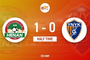 傷停補(bǔ)時(shí)3分鐘。上半場比賽結(jié)束,河南1-0云南玉昆。