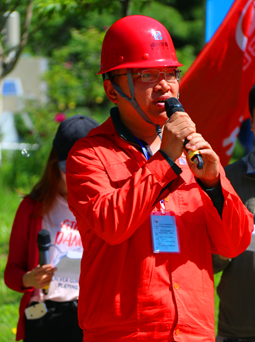 項目部現(xiàn)場總協(xié)調人陳新代表參加演練的施工單位發(fā)言